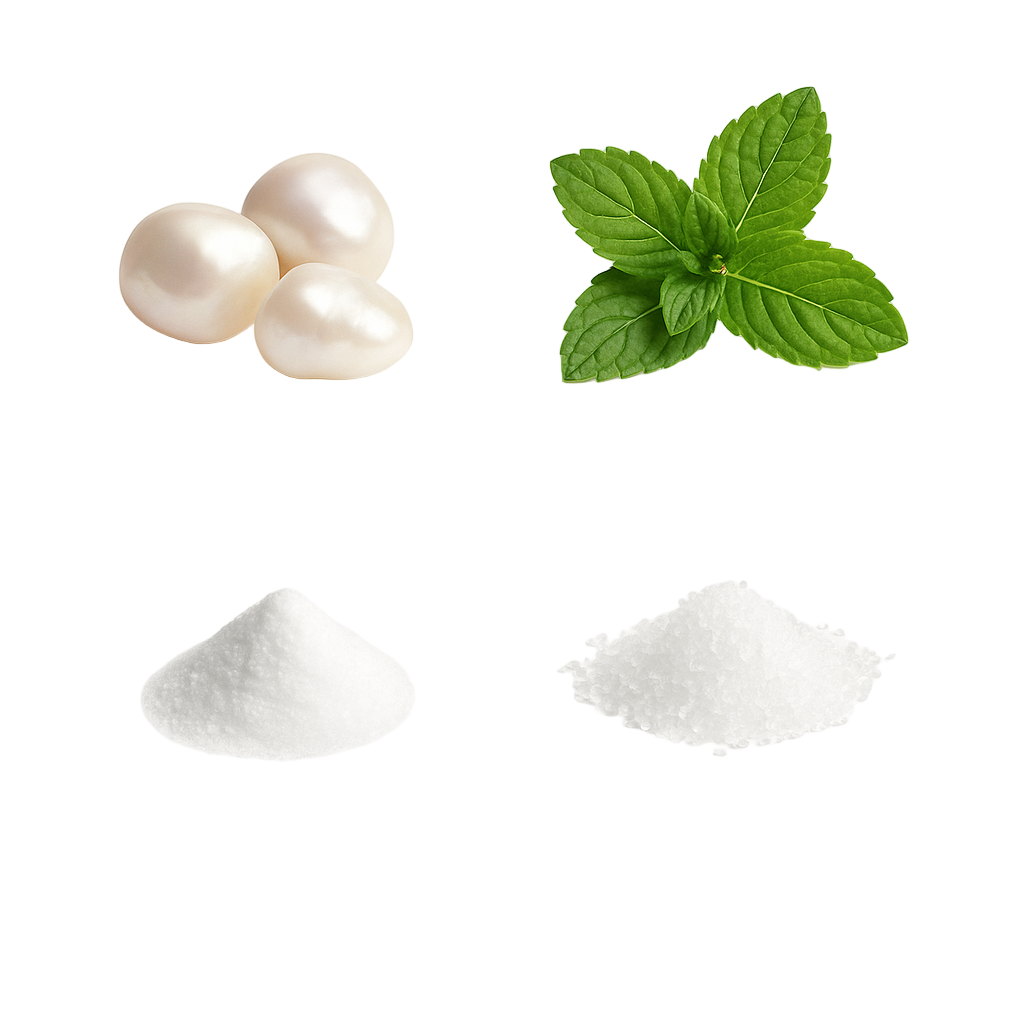 Pearl extract brightens. Peppermint refreshes. Baking soda supports gentle whitening. Xylitol helps reduce plaque-causing bacteria.