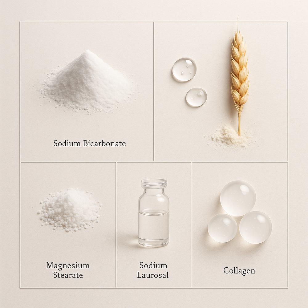 Sodium Bicarbonate — gentle cleaning and neutralizing agent.